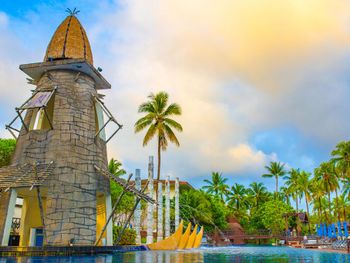 Отличное уединенное расположение отеля. Фактически отель - это большой курорт чуть в стороне от города и большинства остальных отелей (10-15 минут езды). Отличный пляж, на котором всегда есть свободные лежаки, несколько небольших ресторанов поблизости. С противоположной от пляжа стороны есть несколько магазинов, обменники, прачечная и турагентства. Там же водятся и такси. От отеля есть бесплатный шатл до ближайшего рынка в городке (на случай если обуяет жажда покупок). Имеется бесплатная и большая подземная парковка. На территории доступно множество развлечений (боулинг, бильярд, теннис и т.п.), а также прокат велосипедов, каяков и скутеров, причем многие из этих развлечений бесплатны. Обильный и разнообразный завтрак. Хороший вайфай, в том числе и на пляже. Приличный спортзал.