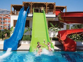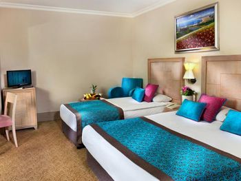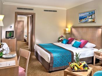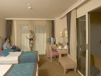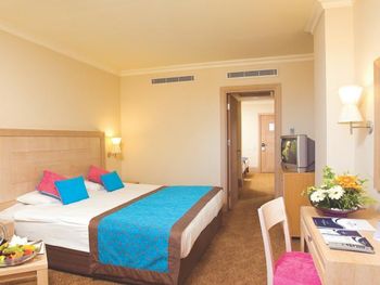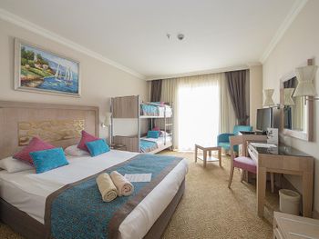 Разочаровал Family room. Возможно избалован, но назвать двухкомнатный номер, где одна комната без окон (как раз для детей) - язык не поворачивается семейным номером. В описании указано Connection room, что в моем понимании путешественника означало - комната обе комнаты между собой связаны (общий тамбур обычно), но тут получается что входишь в первую комнату без окон, затем коридор (здесь же вход в ванную комнату) во вторую комнату с окном и балконом. В первой комнате, увы, темнота в любое время суток. Скидка на не сезон - анимации наверное нет (она есть, но в классическом понимании скорее нет), питание показалось для 5* не разнообразным. И из общего - маленький пляж (ну прям совсем маленький) через дорогу и очень маленькая территория (фактически здание отеля и бассейн). Вечером очень шумно - караоке и концертные площадки рядом, оттуда примерно до 23:30 музыка очень хорошо доносится до отеля (потом тихо), а также за счет расположения отеля в виде колодца (буква П), когда идет уборка внутренней территории и перестановка столов (после 22 часов) стоит скрип и скрежет тележек, на которых ребята перемещают столы и стулья (возможно связано с окончанием сезона и уборкой лишней мебели, поэтому не готов сказать что так будет всегда)