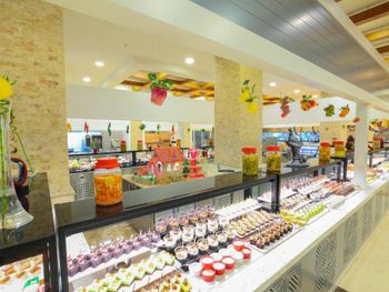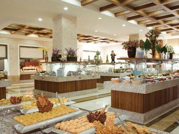 По прибытии гостям курортного спа-отеля Crystal De Luxe предоставляются традиционные турецкие сладости «джезерье» и фруктовый шербет. В ресторанах отеля готовят блюда мексиканской, итальянской и турецкой кухни.
