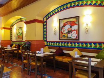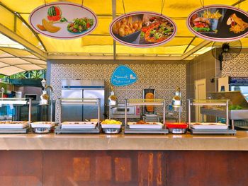 Очень хорошо готовят. Разнообразно и очень вкусно. Мясо, рыба, овощи и салаты. Сделано так, чтобы и вегетарианец и мясоед нашел себе блюдо по вкусу. Есть и здоровая еда и салат с майонезиком :) Все остальное на четверочку с минусом, а еда была шикарна!