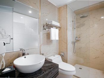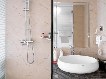 В душе вода вытекала на пол всей туалетной комнаты. Уборка номера удовлетворительно.