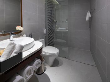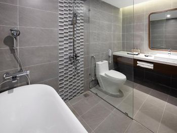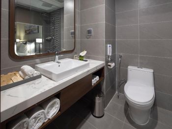 Современный отель! Чистый, полотенца меняли каждый день (белые, ароматные), халаты и постельное бельё раз в неделю. Прекрасный завтрак-буфет (шведский стол)