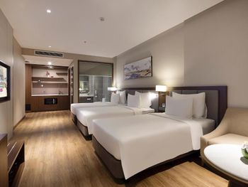 Отель на 2 линии, 5 минут пешком до центрального пляжа, напротив два торговых центра с супермаркетом. Семейный номер двухкомнатный с большим балконом (вид на город). Уборка нормальная, кровати удобные, сантехника работала, WiFi летал. Бассейн большой с детской зоной, глубина 1,4 и 0,9 м, под крышей, но на свежем воздухе. Завтрак хороший, фрукты, овощи, яйца в разных вариантах, горячие блюда (курица, свинина, говядина, утка), выпечка, супы, всё немного с китайским уклоном, но без излишней остроты, голодным не останешься. Лифты быстрые и их достаточно много.