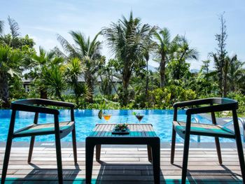 Территория очень ухоженная. На ресепшен оформились быстро, без проблем и въезд и выезд. Есть бесплатный трансфер в Нячанг, но нужно получить билет на ресепшен за день до поездки. С удовольствием воспользовались.