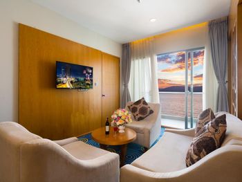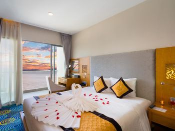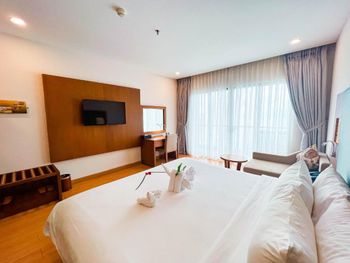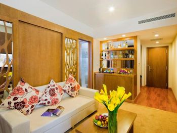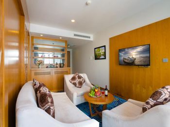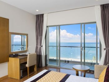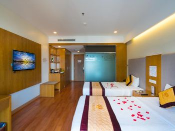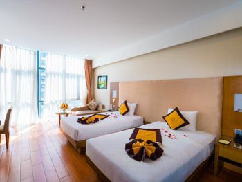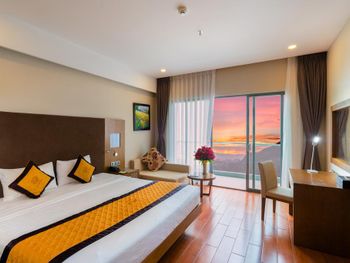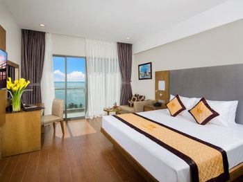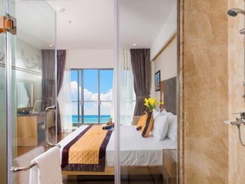 Центр Нячанга, все необходимое рядом. Удобный двухкомнатный номер с огромной кроватью. Номер был с видом на море и большим балконом.