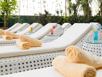 У отеля есть собственные лежаки на городском пляже, до которого надо дойти.