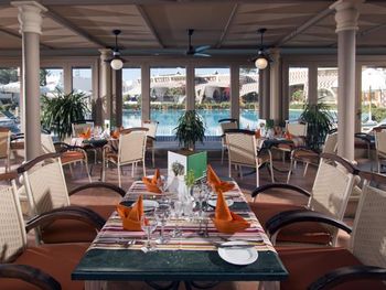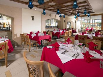 В ресторане El Khaima с террасой в течение всего дня сервируется «шведский стол» с большим выбором блюд. Также на территории работает спортбар Locanda. В баре на пляже можно заказать коктейли и моктейли, приготовленные из свежих фруктов.