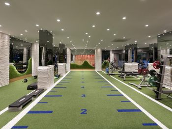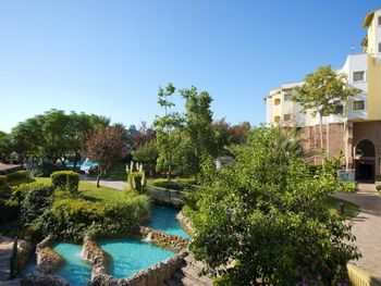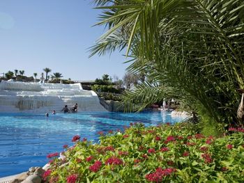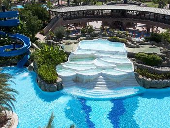 Открытый плавательный бассейн построен в форме травертин Памуккале. Другие бассейны оборудованы водными горками. В числе прочих удобств курортного отеля — спа-центр с турецкой баней и сауной, футбольное поле и фитнес-центр.