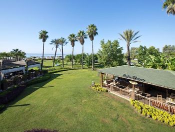 Территория отеля просторная ,красивая и зелёная.Удобно отдыхать с детьми. Вкусная еда. Кормят хорошо.Включены напитки тоже.