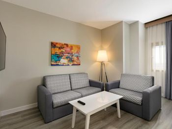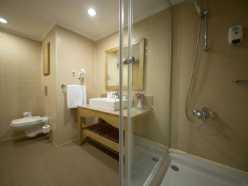Март 2021 - Бассейн, хамам, сауна только по предварительной записи и только на 30 мин в день (антиковидные меры), и только до 16 00 (!), фактически бассейна нет (бассейн размером 3х3м) - Спорт-инвентарь нужно брать в основном корпусе и потом с ним идти на корт/поле/площадку метров сто - после 19 00 (заката) никаких активностей на улице ( теннис, пинг-понг, баскетбол), т.к. освещения нет на площадках - фактически после заката только бильярд (2 стола) и бар - сейф в номере есть, но без ключа (аренда ключа 1,5 € в день) - небольшой набор блюд на завтрак