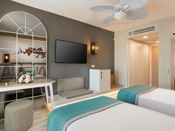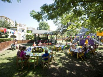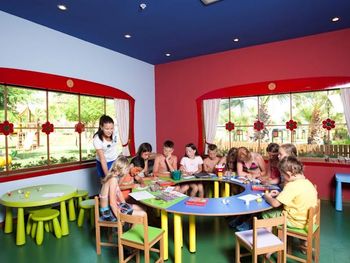 Хороший отель, ориентированный прежде всего на отдых с детьми. Много аквазон для детей — малышковый бассейн 2+ (наши дети 2 и 5 лет были в основном там), бассейн 3 с аква-горками рядом с ним уже для детей 5+, еще подальше большая аквазона с кучей активностей тоже на 2 года и старше. плюс к этому два зврослых бассейна в разных частях территории. Территория отеля большая, чутка запутанная (и так интереснее), каждый день встречали черепах, еще много кошек. Отличный песчанный пляж, много лежаков под навесом, тут же можно перекусить и выпить кофе/пиво/алко, для детей на пляже есть небольшая площадка на песке под навесом. Есть детский клуб где можно оставить детей — огороженная лужайка в тени с массой качель и горок, а также небольшое сдание с приблудами для игр внутри. Питание разнообразное, всё вполне вкусно. Забавно - в первый вечер когда прилетели пошли на ужин, набрали еды, но показалось что как-то мало мясных блюд, ну думаем, ладно - всё равно вкусно и достаточно разнообразно; когда уже поужинали и уходили смотрим - люди еще куда-то наружу здания активно ходят; мы вышли и обнаружили там просто целую «улицу» еды, с барбекю, мясными блюдами, нарезками фруктов и пр.))) Долго смеялись потом над собой)) Номера хорошие, чистые и в достойном состоянии. Судя по датам производства в лифтах, зданиям около 20 лет, но явно были реновации которые поддерживают инфраструктуру в отличном состоянии.
