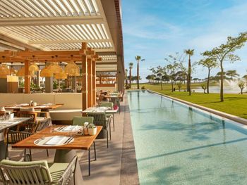 Проживание в отеле в целом было комфортное,не считая некоторые нюансы,которые были исправлены менеджером по имени Maxx. Бронировала через Booking.com номер лагуна гольф,на фото был другой номер ,ошибка букинга возможно,мой номер оказался не на солнечной стороне,в тени с утра до вечера,так что позагорать на шезлонге у бассейна не получилось.Отель в связи с данными обстоятельствами предоставил кабану на пляже на пару дней,по моей просьбе ,что мне очень понравилось и я замечательно провела там время) Рядом с номером находится кафе Lagoon где можно позавтракать,с очень внимательным персоналом ,которые прекрасно обслуживали и красивым видом на гольф поля. Очень понравился тренажёрный зал,очень функциональный и большой) Хочу отметить что в этом отеле персонал старается ,выполняет все пожелания с улыбкой ,приносили на пляж все что просила не по меню)
