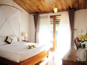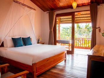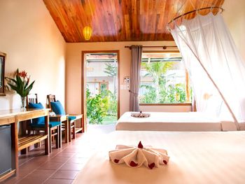 Довольно неплохой отель, весь в зелени. На вид уютный. В комментариях жаловались на ванную на улице в бунгало. Не испытывал дискомфорта по этому поводу, наоборот, это даже понравилось. Завтрак не богат, но голодными не останетесь. Wi-Fi был слабоват, периодически пропадал вовсе.