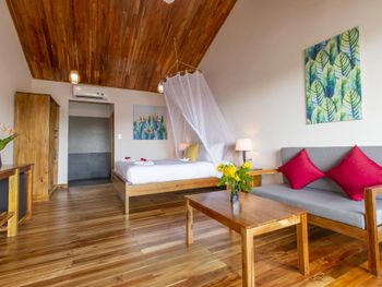 Отличный бассейн с доступом в любое время. Отдельное бунгало. Всегда можно было покушать. Отличный персонал. Очень зеленая и ухоженная территория. Рядом вся инфраструктура.