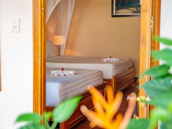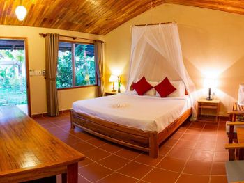 Большая влажность в номере из-за того чт он в тени и много растений рядом. Вещи не сохнут, нет москитных сеток и двери и окно в ванной не откроешь. Комаров очень много. Ребёнка сильно покусали, никакие средства типа москитола не помогали.