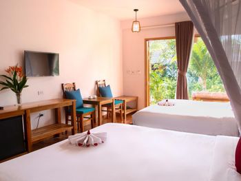 Отель зеленый, уютный, хорошая лужайка перед бунгало. Само расположение отеля идеальное, прогулочным шагом ходили к морю, улочки с кафешками , фруктовыми лавками.Завтрак в отеле вкусный, разнообразный.Брали байк в аренду, посмотрели весь остров, отдыхали каждый день на разных пляжах! Все понравилось.