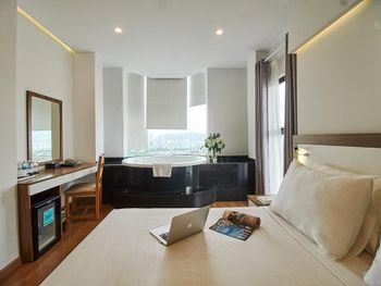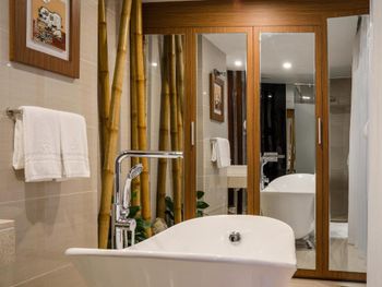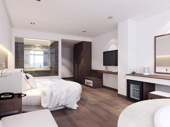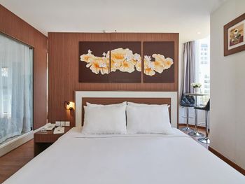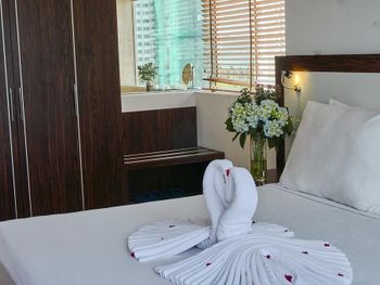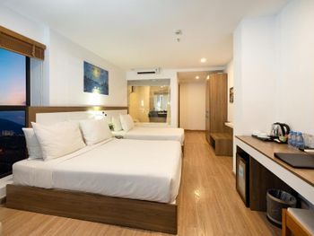 начиталась отзывов и соблазнилась, но зря... отель уже не новый((...туго работает вайфай, розеток всего 2 и почему-то происходит нагрев штекера, светильник прикроватный только с одной стороны и только один пуф (сиденье не опрятное). Щетки зубные ужасные, не кладут станков одноразовых, хотя до этого отеля жили в трешке-там были... кондиционер расположен не удобно (оба простыли), в холодильнике не было ни одной полочки, на вопрос «почему?»- получили ответ «да. В этом номере холодильник без полочек»🤗 мини бар скудный: только вода🤭 ( нет ни напитков, ни пива, как обычно бывает). Дверки у шкафа скрипят так жестоко!!!!Положили в корзину для прачечной свои вещи для стирки, они остались не тронуты. Впечатление что данная услуга не организована. Малюсенький бассейн не заинтересовал (грязь по стенкам), так же как и тренажёрный зал из 3 снарядов. Много пакетных туристов. Район неуютный, тесный и суетный, живут в основном русские и китайцы. Мое мнение -Обычная трёшка. Политика отеля- Предьявить карту с которой произведена оплата, но так как мы ее не взяли - предложили оплатить снова, с возвратом средств на ту карту в течение месяца.Неприятно.