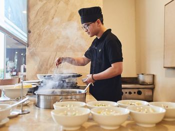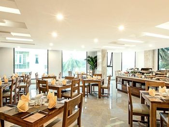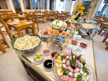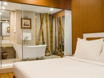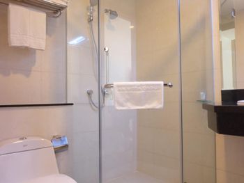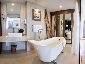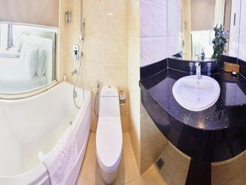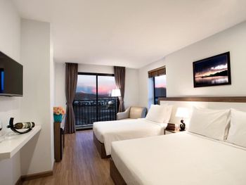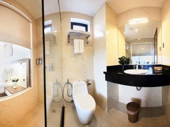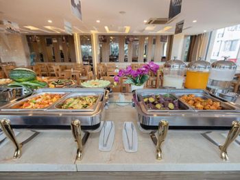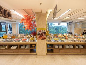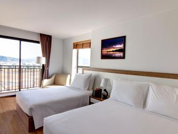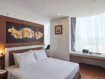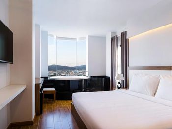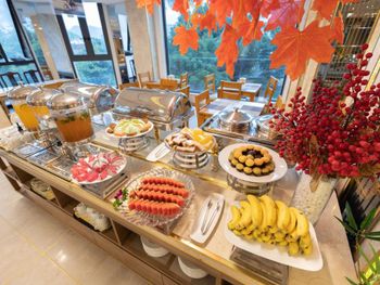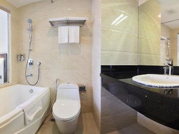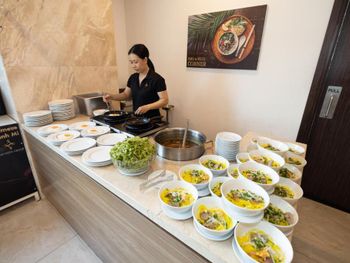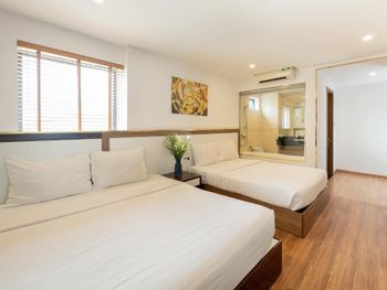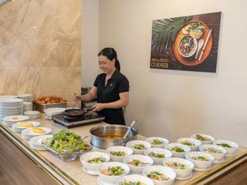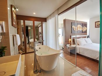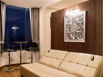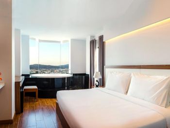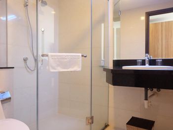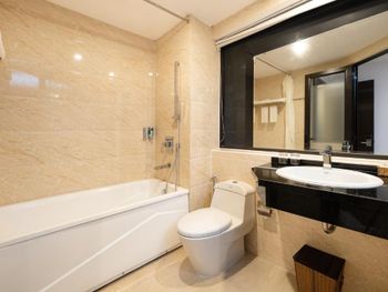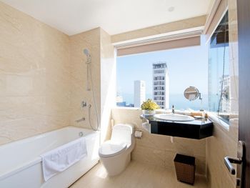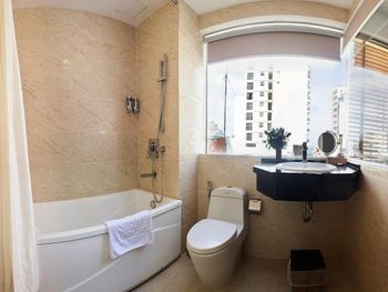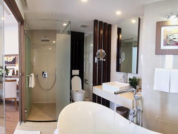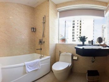 У нас был номер с двумя спальнями. Искал информацию по этим номерам, в описании отеля не однозначно, на фото не совсем понятно, но это реально двухспальный номер. Первая комната - две односпальные кровати, своя ванная и санузел. Вторая комната - огромная двухспальная кровать, свой санузел и душ (но странное решение дизайнера). Не совсем понятные также другие дизайнерские решения, наш номер на 16м этаже, не было балкона, на 15 и ниже хоть и маленькие но балконы есть. Лифт очень быстрый, бассейн на 18 этаже, там же под крышей не функционирующий бар, но можно посидеть со своей едой и напитками. На завтраки всегда суп, яичница, омлет, фрукты, хлеб, десерты, и местная кухня: рис, лапша, кукуруза, свиные ребрышки, также всегда зелень для салатов, черри, огурцы.