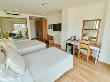Очень вежливый персонал, расположение рядом с морем, большой выбор еды на завтрак, шумоизоляция идеальная, ремонт свежий. В номере регулярно убираются, много воды в бутылках в холодильнике, чай, кофе, все приносят ежедневно. Из отеля можно заказать такси в аэропорт за 300к Донгов, это дешевле, чем в сервисах такси. С удовольствием вернёмся еще раз!