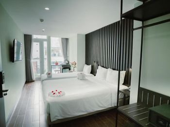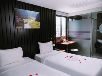Брали 3-х местный номер с балконом + завтраки. Выбор пал на Hermes Hotel Nha Trang по следующим параметрам : 1) при бронировании не нужна была оплата и карта (это основной пункт для жителей из России, т.к. карта МИР не проходит), 2) расположение отличное -всё близко, хоть и не первая линия. 3) номер с двуспальной + односпальной кроватями, т.к. ребенок взрослый. 4)наличие балкона - это важно , особенно при длительном проживании, тут он очень маленький , но при сушке вещей выручал всегда. В отеле он не у всех!! 5) Цена с завтраками очень демократична , на длительный срок ( у нас более 20 дней ) просто отличный вариант сэкономить деньги при самостоятельном путешествии БЕЗ ТУРФИРМ! Чистота в номере , уборка по запросу, замена полотенец, также есть пляжные, персонал на отлично откликался на просьбы. До моря 5 минут.