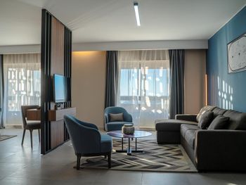 Ужасная звукоизоляция (между номерами дверь с приличной щелью, слышно все что происходит в соседнем номере). Белье было с дыркой и неглаженное. В отеле отдыхает много русских, и качество обслуживания персонала от этого ухудшается.