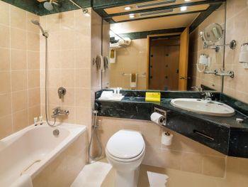 В номере затхлый запах, на балконе грязно, там, похоже, не убираются. Старый ковролин. Дефекты в санузле, не совсем исправный кран