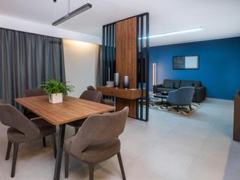 Обслуживание очень понравилось, чистота и вид из номера, хорошая сауна, бассейн с подогревом, теннисный стол в хорошем состоянии и расположение очень удобное, парковка всегда свободна Особенно хочется отметить работу персонала, вежливость и учтивость, хочется отметить работника Nad , даже без знания языка понимает всё прекрасно, мастер своего дела)