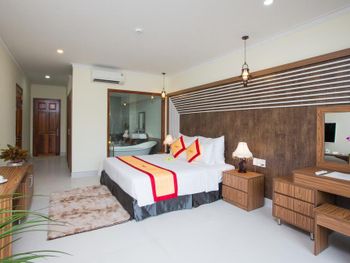 Чистый просторный номер. Приятный и отзывчивый персонал. Бесплатный трансфер до/от аэропорта, до/от пляжа. Замечательные, сытные завтраки, хватало вплоть до ужина. Радует наличие небольшого тренажерного зала и бассейна.