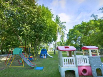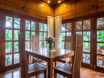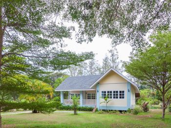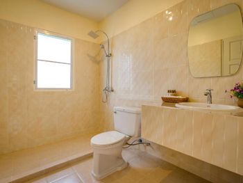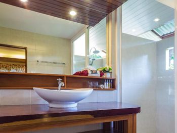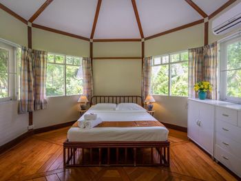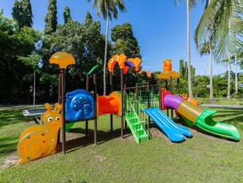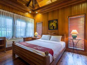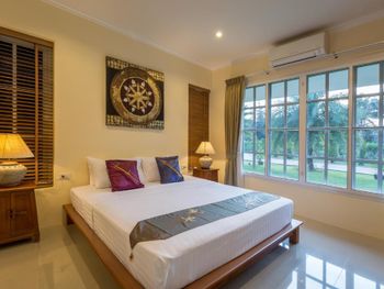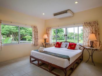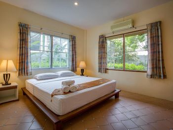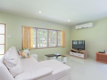 Большая территория, доброжелательный персонал, на территории загоны с пони, оленями, бегают индюки, гуси, в пруду лебеди территория за исключением дорожек из щебенки, вся зелёная. Отличный большой и тёплый бассейн, рядом с отелем большие магазины, кафе с недорогими ценами, через дорогу прокат байков по 200 бат/день. С ресепшена отвозят на гольф каре. Близко к пирсу, с которого можно уехать на острова. В домике посуда, кастрюли, сковородки, все что нужно чтоб готовить. Душ с проточным нагревателем, из за чего слабый напор. Бесплатно дают велосипед.