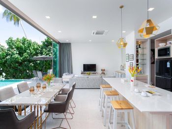 Вилла просторная, с хорошим, стильным ремонтом и полностью оборудованной кухней. Свой бассейн, чудесный вид. На вилле есть все необходимое для комфортного проживания. Большая, ухоженная территория комплекса, мини-зоопарк, детская площадка, много места для прогулок. Есть велосипеды. Тишина и умиротворение. Рядом несколько ресторанов (бургерная, итальянский, японская, тайская, индийская кухни), есть супермаркет и другие магазины в шаговой доступности. Мы отлично провели время! Нам очень понравилось!