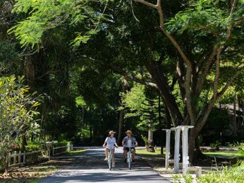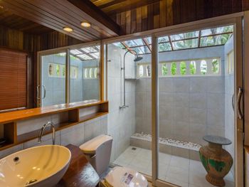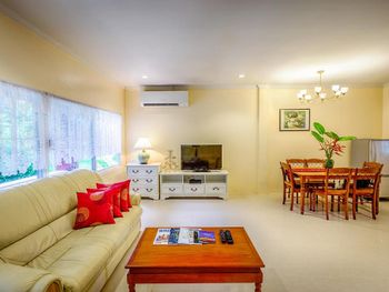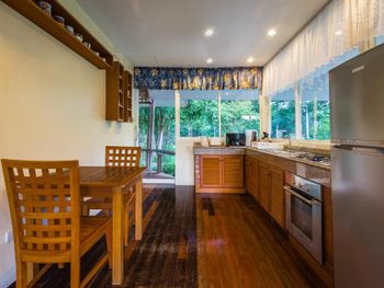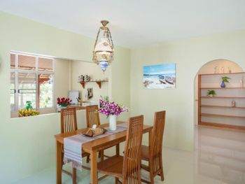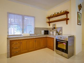Вдали от туристических толп и шума, по утрам пение птиц, чудесный бассейн и в целом вся территория - как будто попадаешь в тропический лес с цветущими деревьями. По территории и в близлежащие места можно передвигаться на велосипеде. Рядом есть несколько хороших ресторанов для завтрака и два супермаркета, в остальное время выезжали на такси куда хочется.