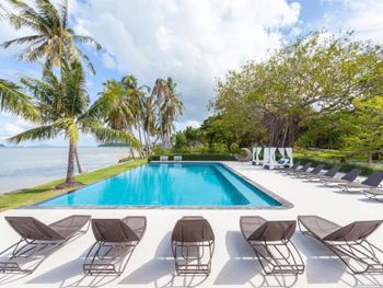 Уютная вилла с собственным бассейном. Вода в бассейне теплая и соленая. Уборку на вилле делали каждый день. Вилла находится в тихом месте, окруженном пальмами и другой многочисленной растительностью. Удобно, что несмотря на отдаленность виллы, можно заказать доставку блюд из ближайшего итальянского ресторана. Рядом есть Macros - супермаркет, в котором можно купить все для завтрака. Вид с виллы очень красивый - на остров и часто проплывающие корабли вдалеке.