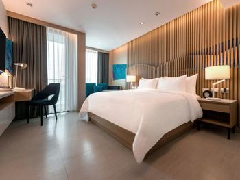 Каждый из 236 номеров отеля оснащен телевизором с кабельными каналами, принадлежностями для чая/кофе и электрическим чайником, а в некоторых из них обустроена гостиная зона. Из ряда номеров открывается вид на море или город. В числе стандартных удобств всех номеров — собственная ванная комната с душем, биде, халатами, тапочками, бесплатными туалетно-косметическими принадлежностями и феном.