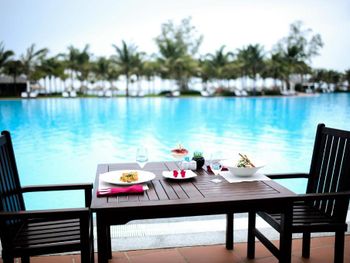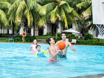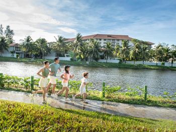 Ассортимент блюд на завтраках, обедах и ужинах очень не плох. рядом парк с аквариумом и аттракционами, детям понравиться, цена высокая 500 донгов с человека