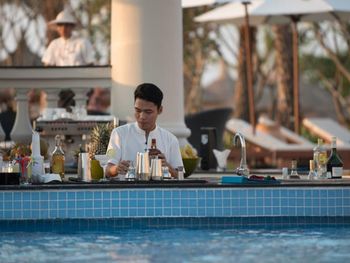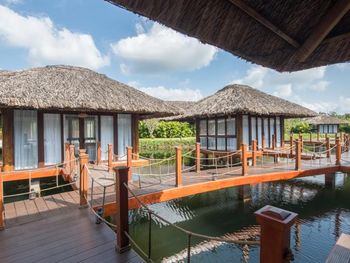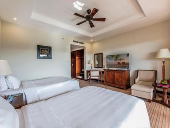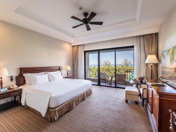 Насладитесь великолепным сервисом в Vinpearl Resort & Spa Phu QuocКурортный спа-отель Vinpearl Phu Quoc с архитектурой в индокитайском стиле и ярко-красной плиткой предлагает своим гостям отдых в открытом бассейне площадью почти 5000 кв. м. Гости могут гулять по пляжу, любуясь закатом, отдыхать на зеленых участках отеля или расслабиться в кресле за просмотром любимого семейного фильма в пляжном кинотеатре. Для гостей сервируют «шведский стол» с морепродуктами в расположенном у моря ресторане Pepper, где звучит живая музыка и откуда открывается великолепный вид на закат. Кроме того, гости могут насладиться уникальным балийским массажем в спокойной обстановке спа-хижины.