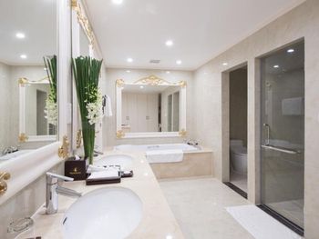 В элегантно обставленных номерах есть кондиционер, шкаф для одежды, сейф, мини-бар, гостиная зона и телевизор с плоским экраном с кабельными каналами. В распоряжении гостей собственная ванная комната с душем, феном и бесплатными туалетно-косметическими принадлежностями.