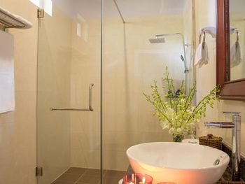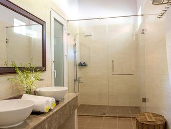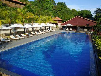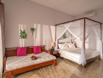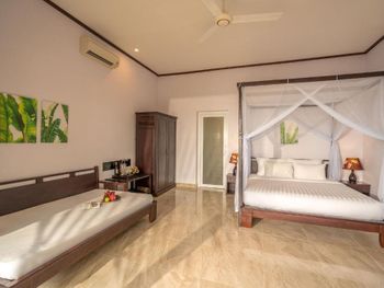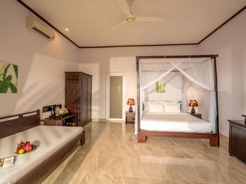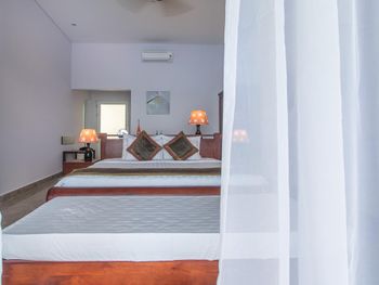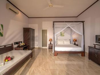 Сервис в отеле нулевой. Забронировали номер на 4ночи,переезжали 3раза. Сначала не могли решить проблему, так как прямо в потолке по ночам, над твоей кроватью кто то бегает. Попросили переночевать в другом номере. Ок. Утром снова вернулись. Вечером история повторяется. Просят уже переехать с вещами. Ок. Вы не поверите, через 2 дня встречают, после завтрака, говорят снова переехать!!! Видите ли им неудобно новых гостей заселять. А нам, удобно? После часа препирательста, пришлось переехать, правда повысили категорию до виллы с бассейном личным. Хотя у нас тоже была вилла у моря, бассейн нам и не нужен был хлорированный к тому же. Еще такие мелочи, как отстутствие пододеяльника на одеяле при заселении. Заходишь, а кровать застелена несвежим одеялом. Противно. Ходишь просишь, объясняешь.. Розетки искрятся и вообще какая то фигня в этом отеле творится. Завтраки на твердую 3. С фруктами беда. Соки пакетированные. Жили до этого в отеле 3звезды,дешевле,сервис на 5.В общем накипело. Если хотите бегать, решать всякие проблемы, пусть и мелкие, то вам в этот отель. Я лично не рекомендую! Лучшие отели, это Gold coast, и camia. И еще такой момент, возле пляжа всего 5-6бунгало и столько же вилл. Если поселят дальше, то до пляжа метров 500-700 , при чем гольф кары у них не для гостей, на них сотрудники катаются. А вы, господа играйте, ножками