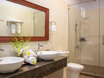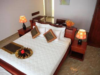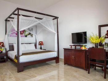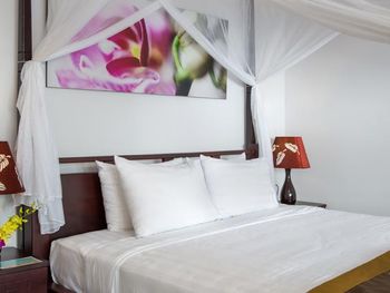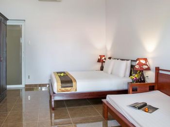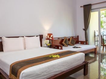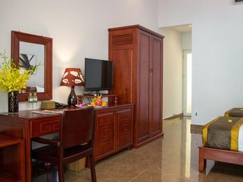 В этом отеле уже третий раз. Всё как всегда на высоте. Отличные и разнообразные завтраки, чистая территория, чистый бассейн. Персонал на пляже постоянно убирает траву, которую выбросило из моря. Вода в море чистая, дно видно. С номером не повезло. Жили в 309-м. Сначала текла раковина - пришли устранили, потом начала на голову с потолка капать вода, когда сидишь на унитазе. Залезли на крышу, устранили течь из крышного бака накопителя, но этого хватило на день, следующей ночью всё повторилось, но на следующий день пришли сделали видимо нормально. Шумоизоляции считайте, что нет. В соседнем номере слышно, что говорят соседи, поэтому сексом надо заниматься либо днём, когда никого нет, либо молча! В 309 есть ещё один отрицательный момент в том, что на внешней стене этого номера висят три кондиционера от соседних номеров и естественно они не отбалансированы (кто же во Вьетнаме знает что это такое?) и вибрация этих кондиционеров передается на стену создавая волнообразный звук летящего самолёта, поэтому если соседи включают кондёры, то мы типа летим. Во всём остальном отель как всегда пока не плох. Контингент в этом году - японцы -10 процентов, европейцы - 10, казахи - 50 (у них чартеры практически за даром летают) и россияне - 30. Европейцев в этом году стало очень мало, видимо у них деньги кончились из-за санкций в отношении к РФ. А вот казахов столько я даже в Казахстане не видел. Отель супер, цена отличная. Рекомендую, но только не в 309 номер.