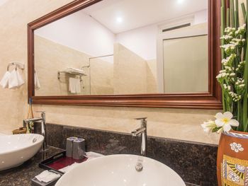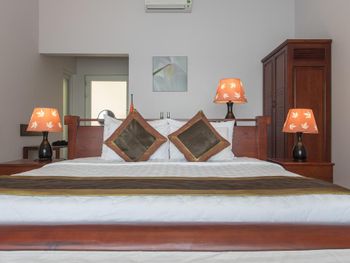 Резервировала 2 бунгало для 2+2,сказали я резервировала 1 бунгало для 1 человека,и 2 бунгало тозе для 1 человека,на момент заезда цена на боокинге была за номер для2 персон опции зарезирвировать 1 бунгало небило!!!!,доплатила им 60 евро,так как маленький ребенок устал з дороги-считаю что меня обманули!!!!интернет в номере все время неловит,расположение в глуши без машины никуда,выйти из отеля надо преодолеть большой подьем в гору,море камни ужасно,попромила есче одно одеяло для ребенка недали!!выбирайте район донг донг!!!!переехала туда