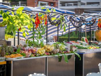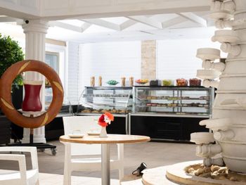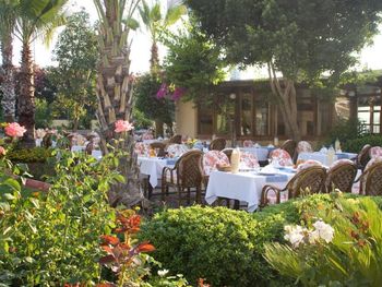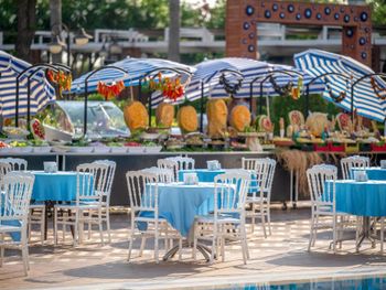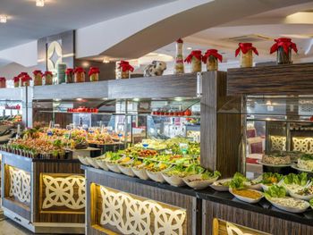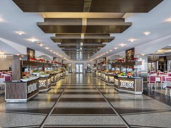 Завтрак, обед и ужин «шведский стол» сервируют в главном ресторане. В течение дня гости могут заказывать закуски и чай. В ресторанах подают по меню блюда османской и итальянской кухни, а также блюда из морепродуктов.
