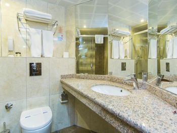 удобства старые, требуют ремонта. Звукоизоляция плохая, слышно все из других номеров и с улицы. В ванной есть полотенца, небольшие гели для душа, мыло для рук и фен. Этого мало для отеля 5*. В номере нет ни халата, ни тапочек.