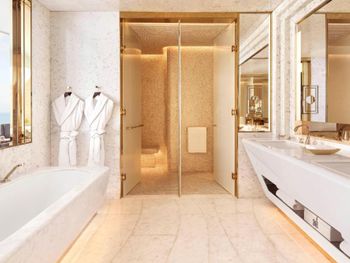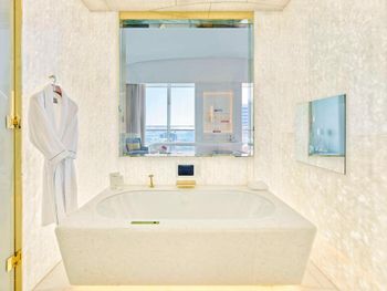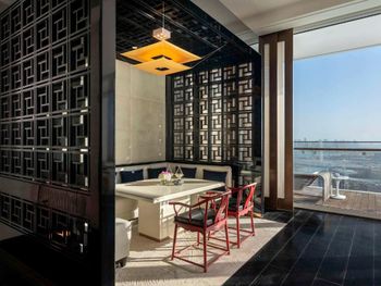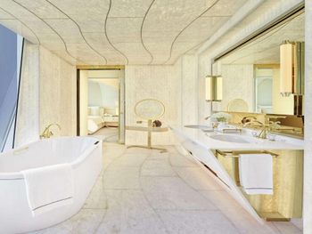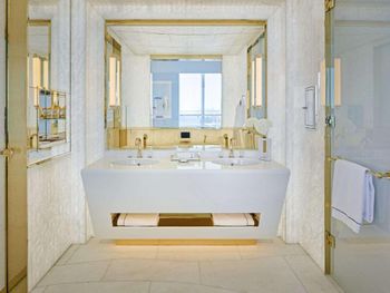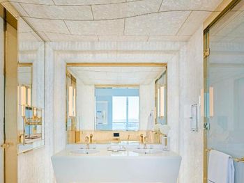 Гости отеля с 5 звездами Fairmont Doha могут воспользоваться крытым бассейном.