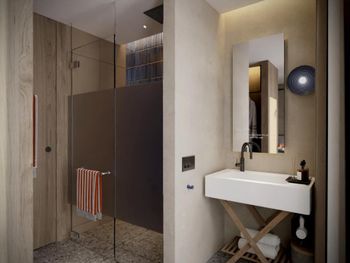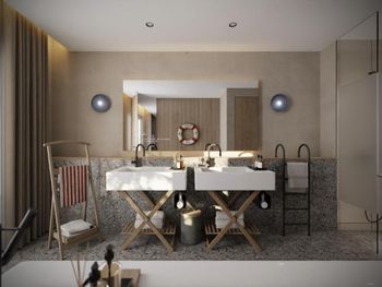 Стильные и чистые номера с комфортным зонированием, очень красивый новый район в европейском стиле, рядом море, есть магазинчики и небольшой рыбный рынок где можно недорого поесть свежих морепродуктов.
