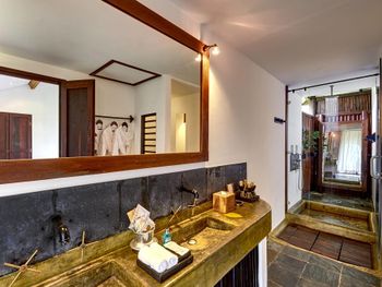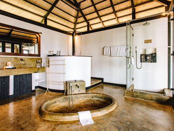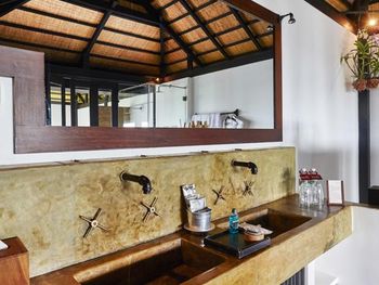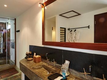 В бунгало душ - под открытым небом (отсутствует часть стены в полметра высотой), что, конечно, прикольно, но не в ночное время, когда оттуда лезут гекконы и прочие гады. Также чересчур высокие цены в ресторане отеля. Дорожки разлетаются на части и срочно нуждаются в ремонте.