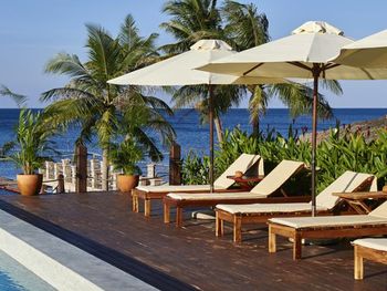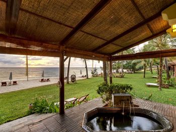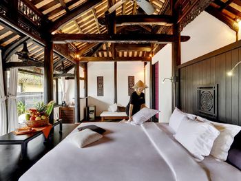 В отеле всего 36 номеров/бунгало, поэтому ни на территории, ни на пляже практически никого не видно. Отличный песочный пляж, температура воды в море - просто фантастика, кажется, что вода теплее температуры тела. Вкусный, разнообразный завтрак на веранде над берегом моря. Вечером в ресторане часто бывает людно - лучше заранее бронировать столик на открытой веранде. В меню блюда как вьетнамской, так и международной кухни. Повар свое дело знает на 5 баллов. Очень хороший сервис. Номера убирают утром и очень быстро. За чистотой на территории следят постоянно с 6 утра и до позднего вечера. Каждый день в номере корзина свежих тропических фруктов. Качественный, высокопрофессиональный массаж за очень приемлемые деньги. В пределах 5-10 минут пешком есть еще несколько ресторанов с хорошей недорогой едой.