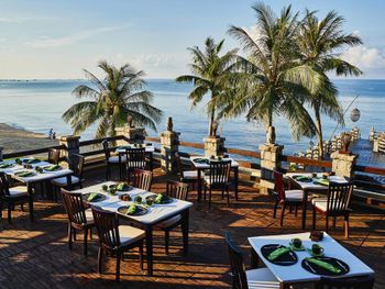 Много мусора у берега когда прилив. Цены в ресторане высокие и сервис не очень.