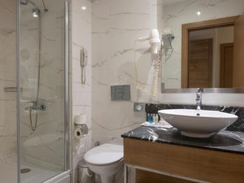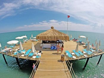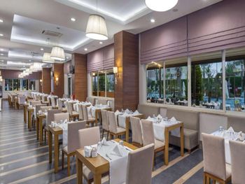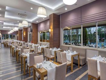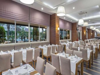 Ресторан в отеле отличный, еда разнообразная и вкусная. Целый день в отеле где-то кормят (кроме основного ресторана есть бары и кафе). Номер чистый и комфортный. Территория отеля чистая и приятная, с бассейнами и горками. Есть детский клуб, аниматор София отлично занимала нашу дочку, для детей есть мероприятия: пекут печенье, из глины лепят, вечером мини-диско. Пляж рядом, нужно немного пройти или дождаться шатла (каждые 10-15 мин.). На пляже тоже есть бассейны, в детском бассейне целый городок с горками и поливалками. Пляж чистый, море утром тоже чистое. Персонал очень вежливый, мы приехали рано утром и нас постарались заселить как можно раньше. Рядом с отелем есть продуктовый магазин Мигрос, рынок со всякой всячиной.