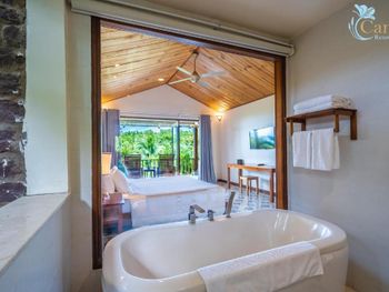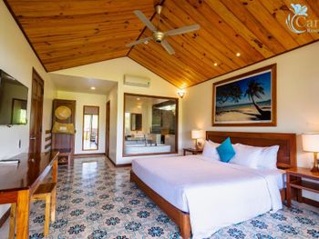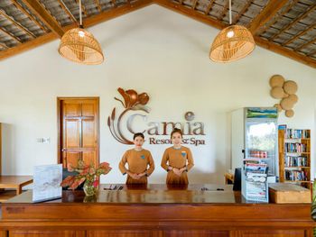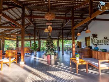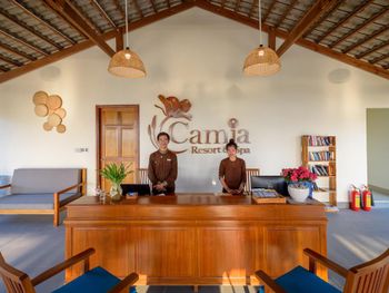 Camia Resort & Spa я ставлю 10/10 Возможно, кому-то курорт покажется неидеальным. И на то всегда найдутся причины. Но, для меня - это одно из тех мест, куда хочется вернуться. Да, отель находится в уединении. Что делает его еще более "своим". На территории нет чужаков, торговцев и тд. До ближайшего магазинчика, где продают напитки, мороженое, снеки, минут 10 пешком (правда, в горку). Напротив магазина ресторан-бар, куда можно ходить для разнообразия. Нам было достаточно ресторанов в отеле. А в супермаркеты мы заезжали во время экскурсий. Территория - она прекрасна! Зеленые ухоженные лужайки, цветы - каких только нет! Тростниковая аллея - отличная задумка и реализация. Невероятно милые арки при входе на виллы "Сад". Потрясающие виды с террасы вилл "Океан" - синее море и богатая природа тропиков. Линия пляжа - дух захватывает! Пальмы, нежный песочек, прибрежные валуны. Именно, из-за валунов чувствуется энергия моря, пляж выглядит аутентичным, непохожим на другие. Оформление пляжной зоны, конечно, детально продумано - бассейн с соленой водой и ресторан Camia отлично вписываются в окружающую среду, добавляют некий шарм. Особенно по вечерам после заката, когда зажигаются вечерние огни. Виллы - просторные! Да, ремонт не свежий. Но, очень чисто. После уборки всегда зажигают ароматическую свечу. Приятный нюанс. Кровать - огромная, постельное белье, полотенца - беленькие. Ванная комната - класс! Все необходимое в наличии. Есть мини бар и предусмотрено все необходимое для пляжного отдыха: халаты, полотенца, шляпы, сумки, сланцы. Небольшой минус для меня - тусклое освещение. Терраса с видом на море этот момент компенсировала сполна. Завтрак - без нареканий. Ассортимент блюд интересный, продуманный. Все меру, без перебора - всегда свежие овощи и фрукты, разнообразная выпечка в мини-формате, стандартные закуски.