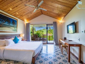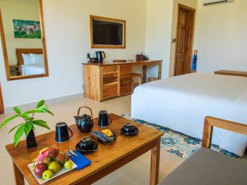Большая зеленая территория. Очень хороший завтрак. Вежливый, отзывчивый персонал. Живая музыка вечером в ресторане у моря. Бесплатный прокат велосипедов и каяков, а также трансфер на близлежащий пляж.