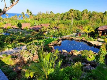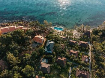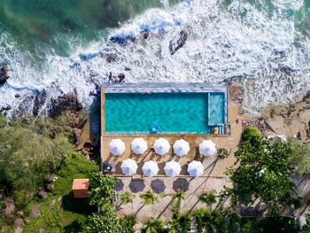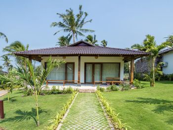 Территория отеля, соленый бассейн на берегу, уютные домики, хорошие завтраки, персонал хорошо говорит на английском, быстрая доставка еды в номер, хороший ресторан
